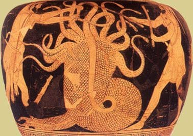 Die lernaeische Hydra war eine Tochter der Schlange Echidna und des Typhon. Eine riesige Schlange mit neun Köpfen. Sie ernährte sich nun schon seit Jahren von den Menschen und dem Vieh des Landes.
